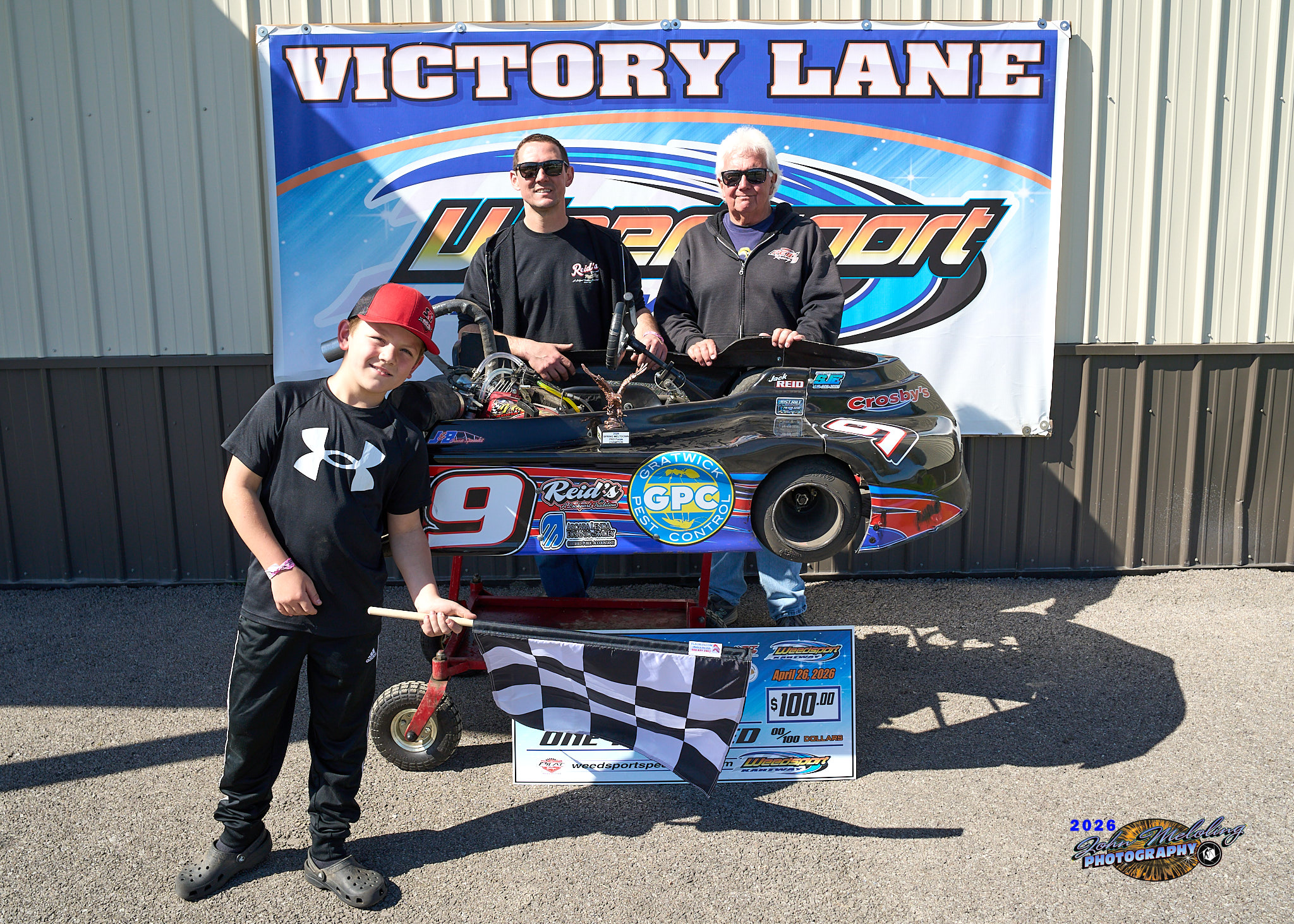 WEEDSPORT, NY (April 27, 2026) – Weedsport Kartway opened its 2026 season yesterday under beautiful blue skies and it was Western New York racer, Jack Reid, topping the day’s PRO Jr. Purple Clone main event behind the wheel of his No. 9, earning $100.